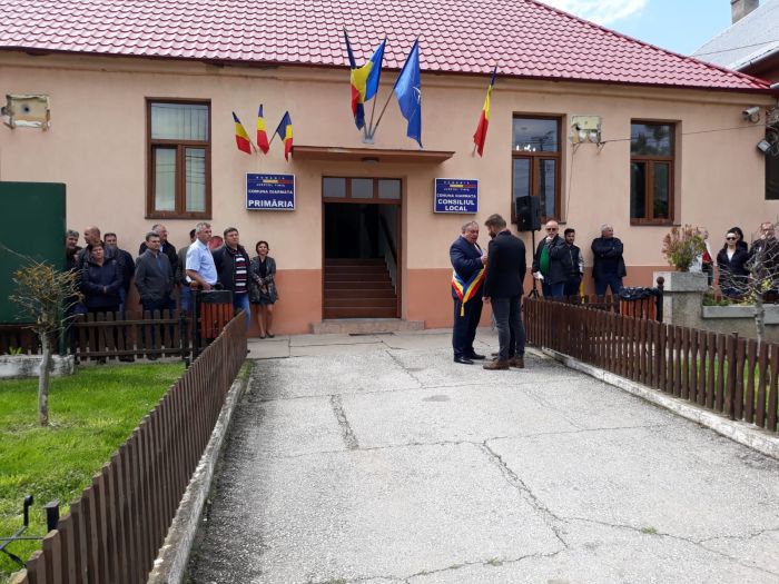 In vreme ce la cateva zeci de metri departare, protestatarii scandeaza lozinci impotriva PSD si a Guvernului Dancila, la Primaria Giarmata angajatii se pregatesc de vizita premierului. Din boxe rasuna imnul Uniunii Europene, urmat de Conquest of Paradise, Vangelis