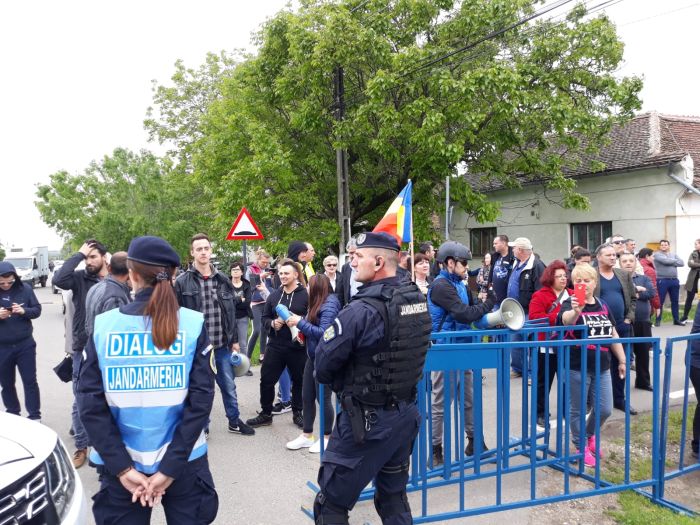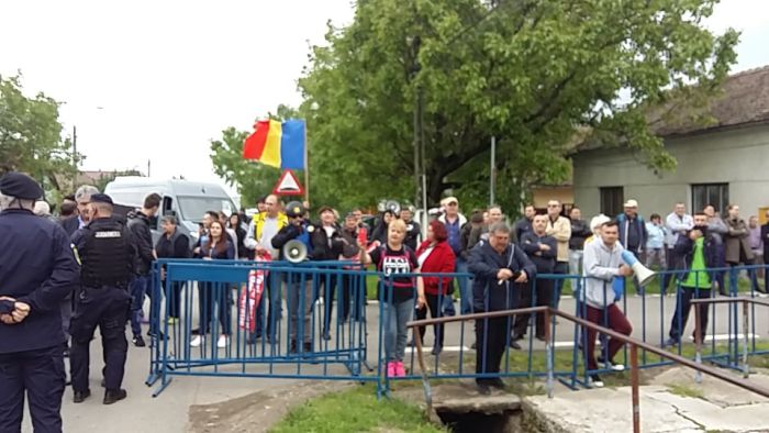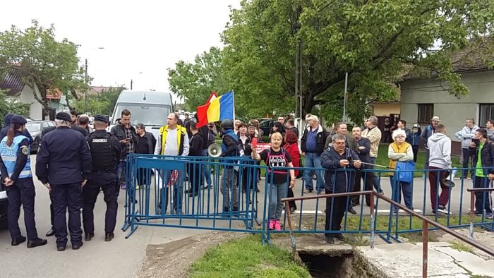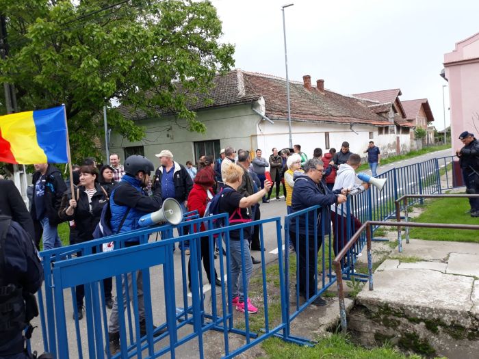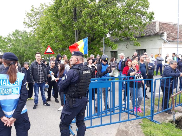 TIMISOARA. Protest la Giarmata in asteptarea premierului Viorica Dancila. Zeci de oameni s-au adunat in zona Primariei din localitatea aflata la 10 km de Timisoara pentru a-si arata dezaprobarea fata de vizita prim-ministrului.