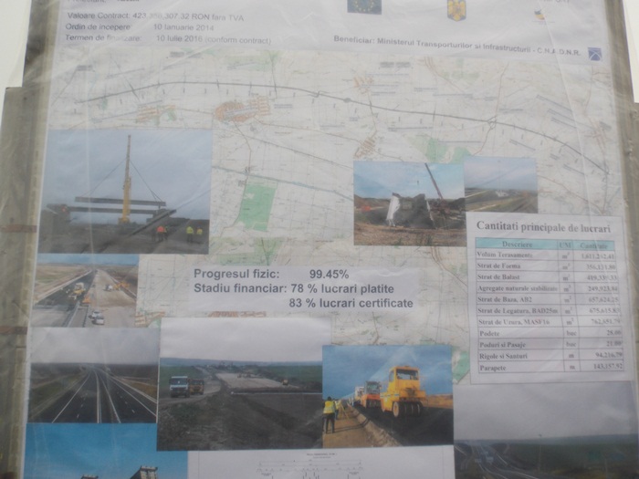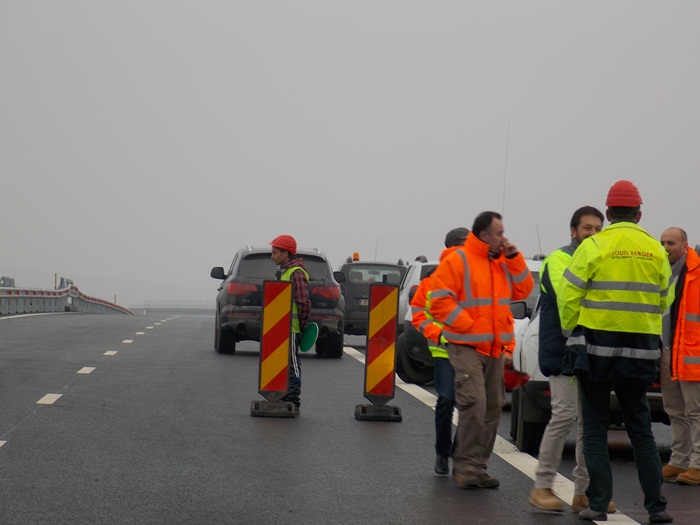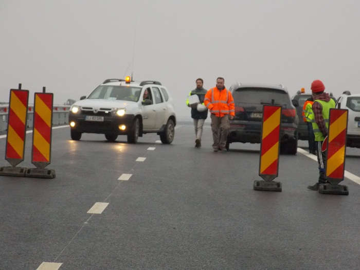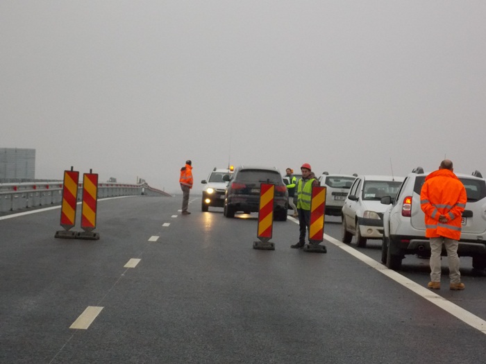 “In afara de lucrarile care nu tin de siguranta circulatiei, cele pentru refugii, totul ar putea fi finalizat odata cu marcajul, din cate mi-au spus constructorii, care mai trebuie facut pe cca 30 de km desfasurat, pe ambele sensuri. Din pacate asta nu e sub controlul nostru si nici al dansilor, ci tine de conditiile meteo, de umiditate cat mai mica si temperatura peste 4 grade. De cum va aparea soarele, avem un termen undeva la 7 zile, eu as zice 10 zile, cu rezerva. Am putea atunci semna receptia pentru zona de rulare, fara spatiile organizate in lateralul autostrazii”, a declarat Dan Costescu.