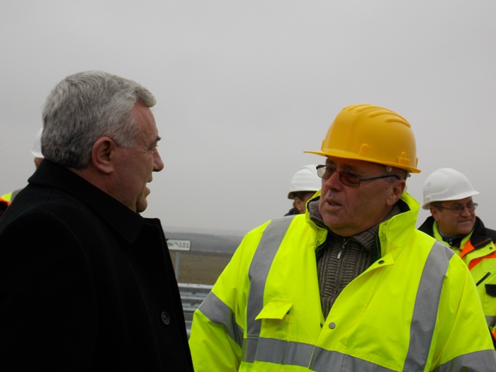 TIMISOARA. Ministrul Transporturilor Dan Marian Costescu a venit in Timis sa vada Lotul 2 al Autostrazii Timisoara – Lugoj, care tocmai a fost finalizat. Inainte de 1 decembrie, constructorii au turnat si ultimul strat de asfalt dar mai trebuie finalizate marcajele.