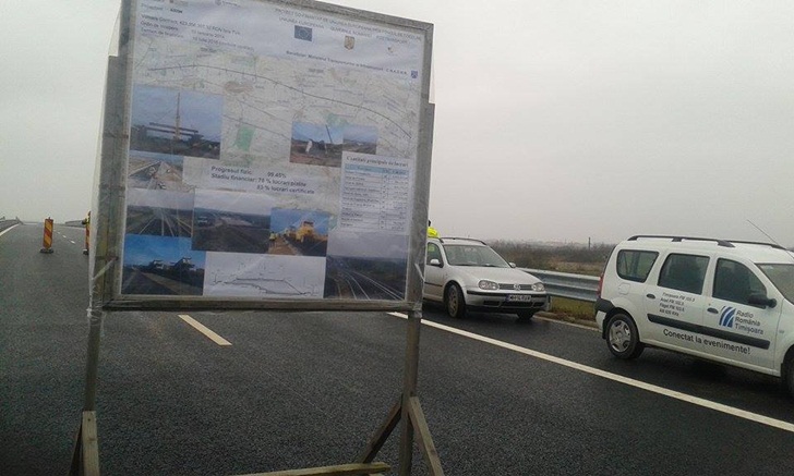 Dan Marian Costescu a fost intampinat de prefectul de Timis Eugen Dogariu si de catre presedintele Consiliului Judetean Timis Titu Bojin. Ministrului i s-a facut o scurta prezentare a indicatorilor din lucrare, apoi acesta a mers sa faca o plimbare pe tronsonul 2 al autostrazii, intre Izvin si Sanovita.