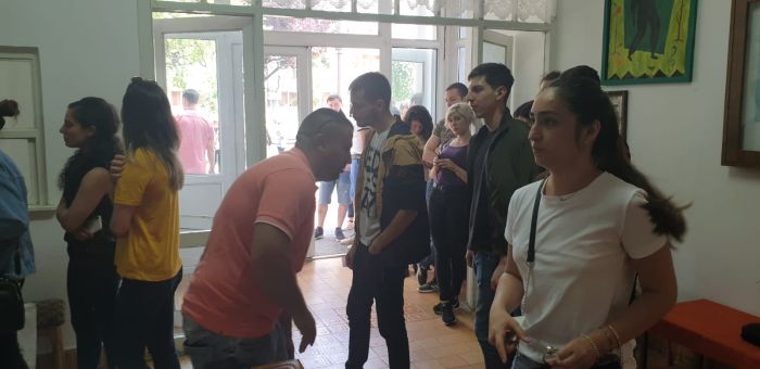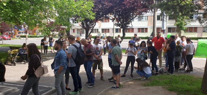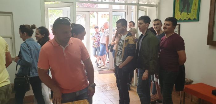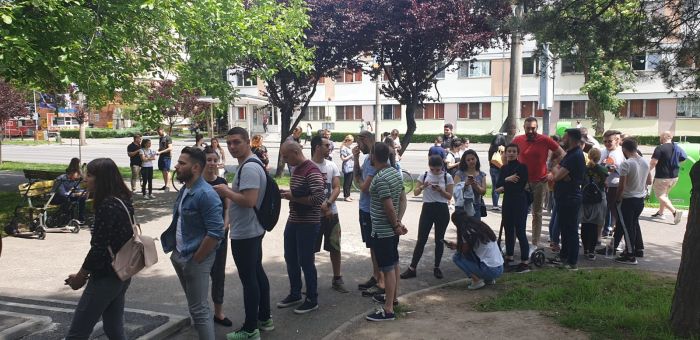 Alegerile sunt in desfasurare si studentii stau la cozi pentru a vota.