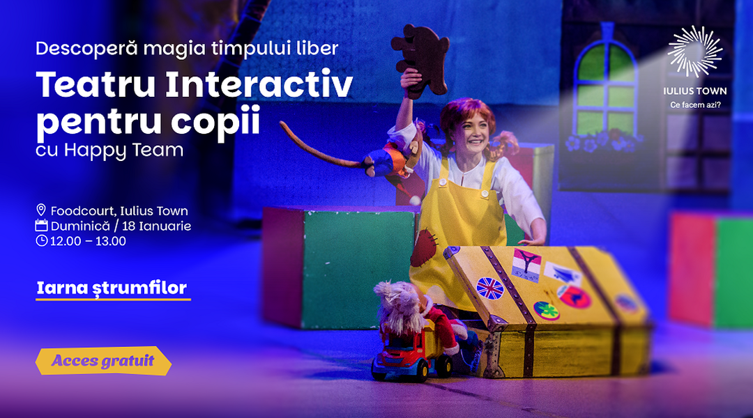 Duminică, 18 ianuarie, de la ora 12.00, Teatrul de Păpuși îi invită pe copii la o nouă „stagiune” plină de zâmbete. Spectacolul „Iarna ștrumfilor” se va juca pe mica scenă din food court. Accesul este gratuit pentru toți doritorii.