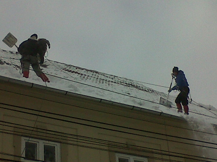 TIMISOARA. Necazul unora, bucuria altora. Alpinistii utilitari din Timisoara isi rotunjesc veniturile din munca pe care o presteaza zilele acestea. Lucreaza la foc continuu, de dimineata pana seara, pentru a indeparta zapada de pe acoperisuri si turturii care pot fi un adevarat pericol pentru trecatori.