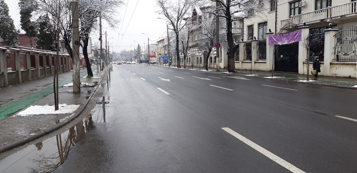 Pe marile bulevarde s-a aruncat cu material antiderapant, zapada se topise deja, iar pe stradutele laterale pe care n-au trecut utilajele de deszapezire defel, stratul de nea era subtire.