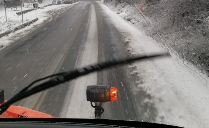 Au fost imprastiate sambata 100 de tone de material antiderapant pe mai multe sosele din vestul tarii. Aceasta dupa ce se actionase si peste noapte.