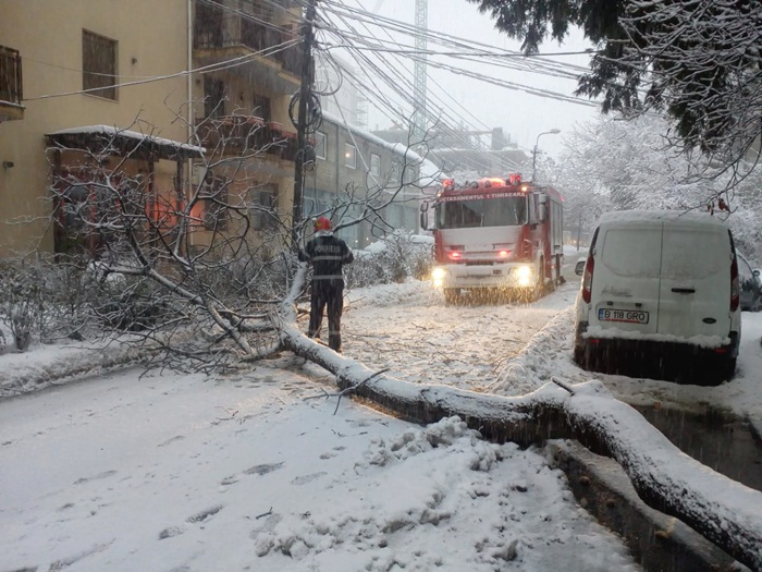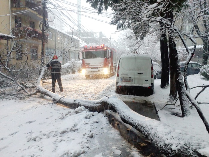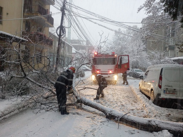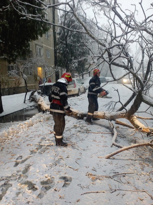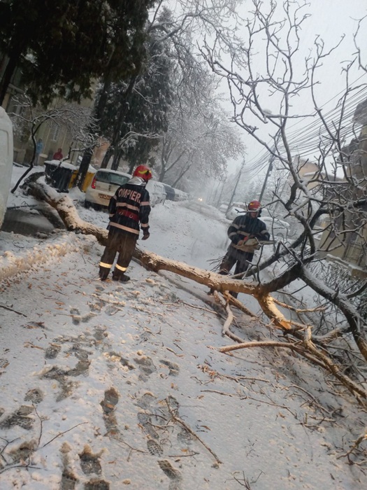Au fost multe si interventiile pompierilor pentru eliberarea unor strazi peste care au cazut copacii plini de zapada.