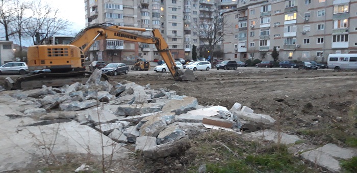 La mica distanta de parcarea care este aproape gata, angajatii Primariei au inceput curatenia in spatiul in care in urma cu un an erau garaje, la sud de strada Sirius.