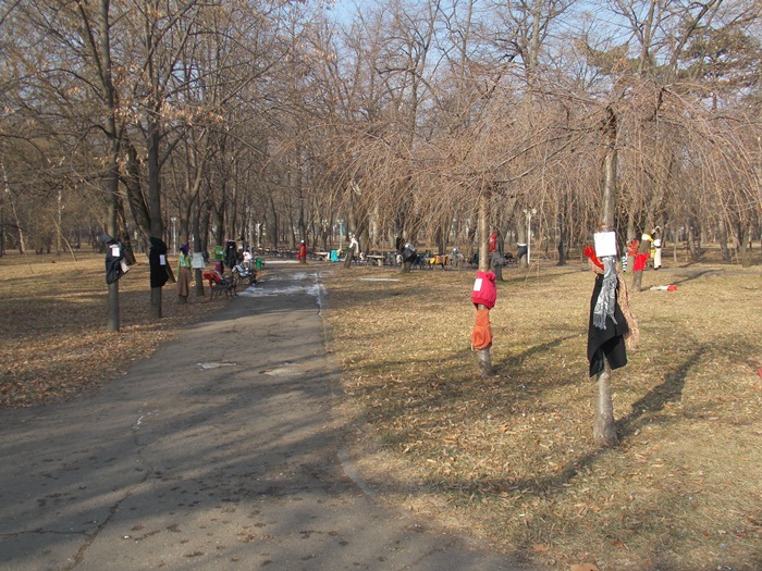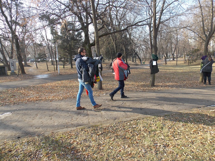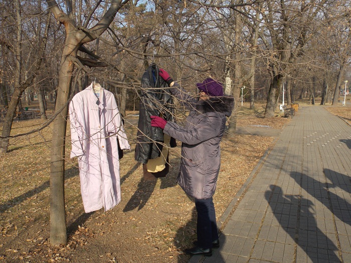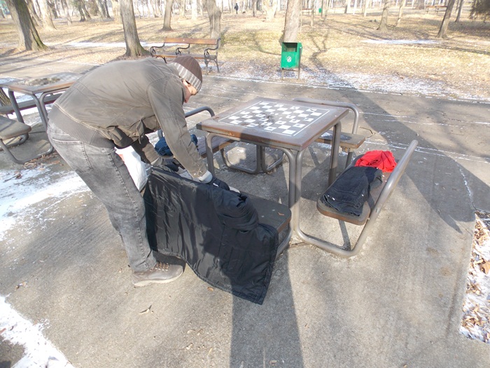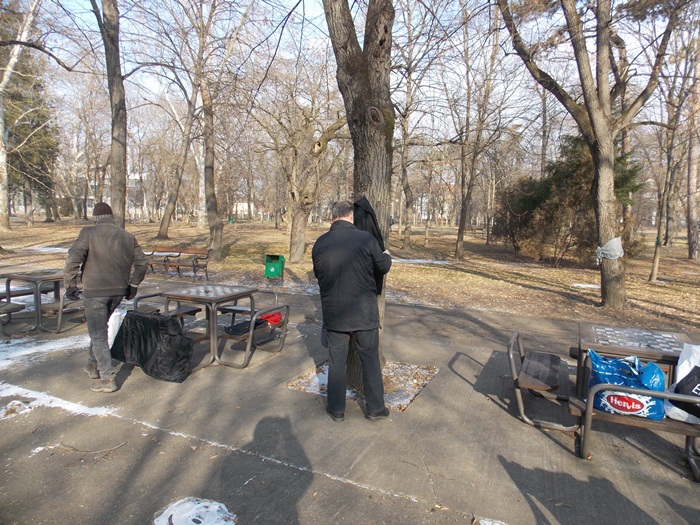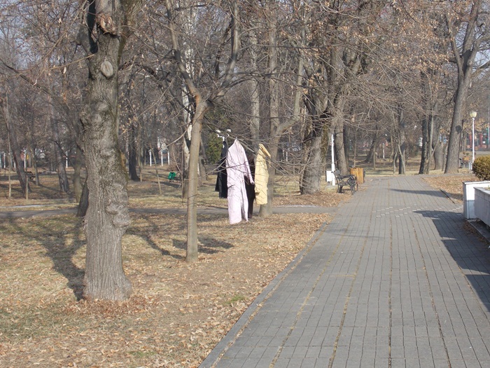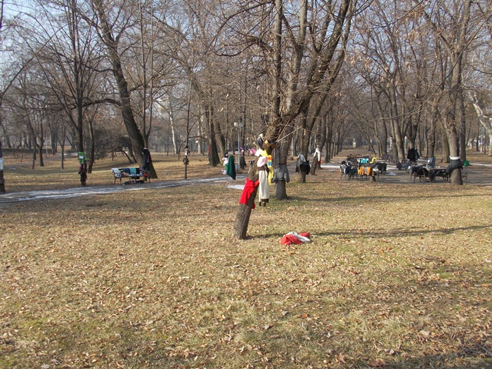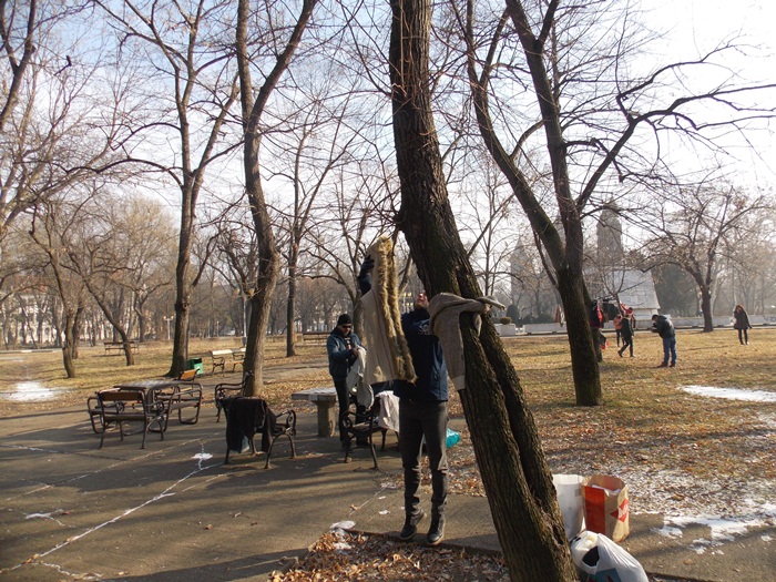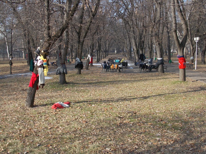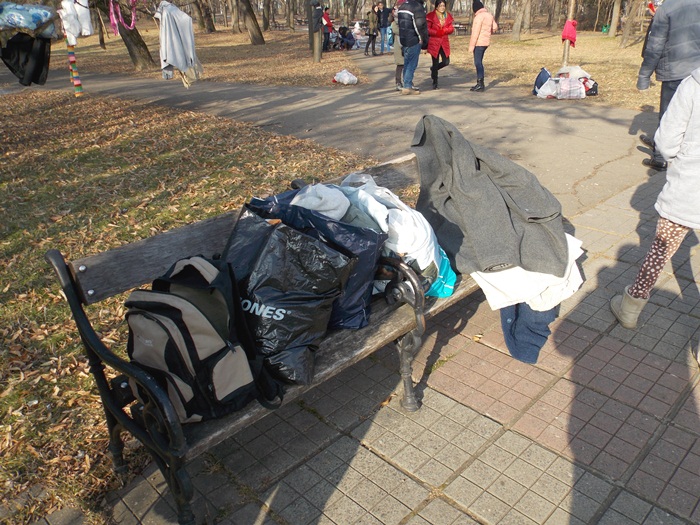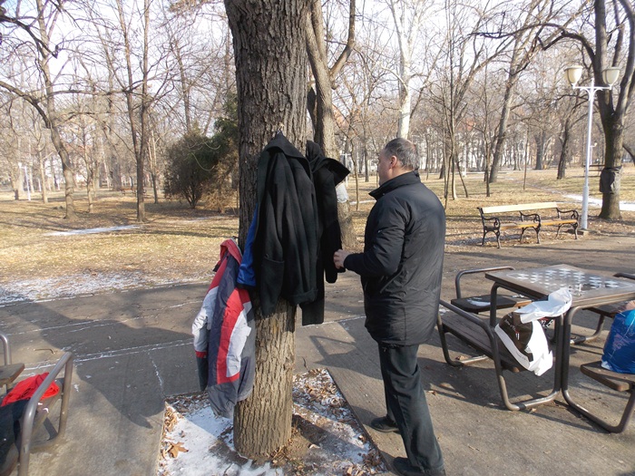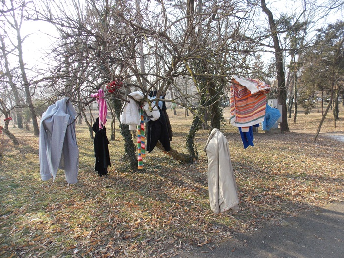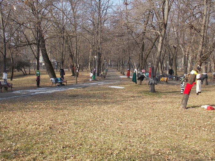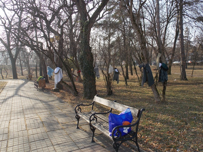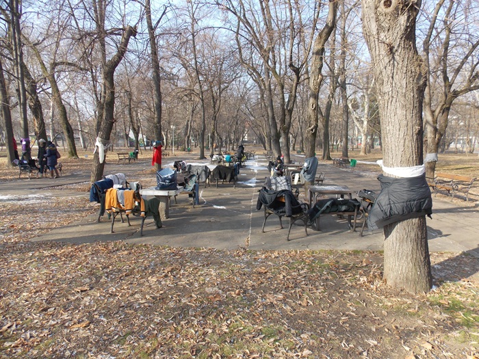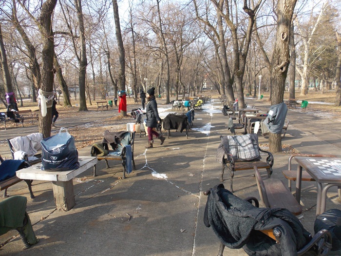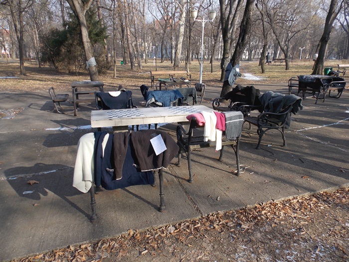 Cei care nu au pus hainele pe copaci, le-au pus pe bancile din parc si pe cele de la mesele de sah din Parcul Central.