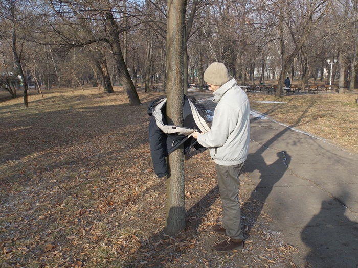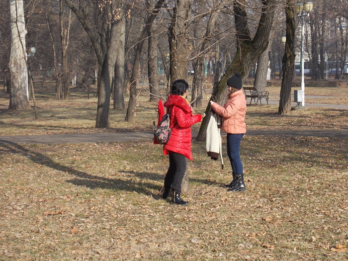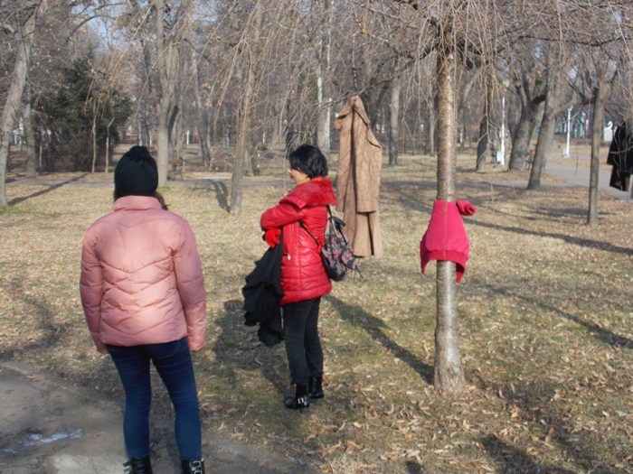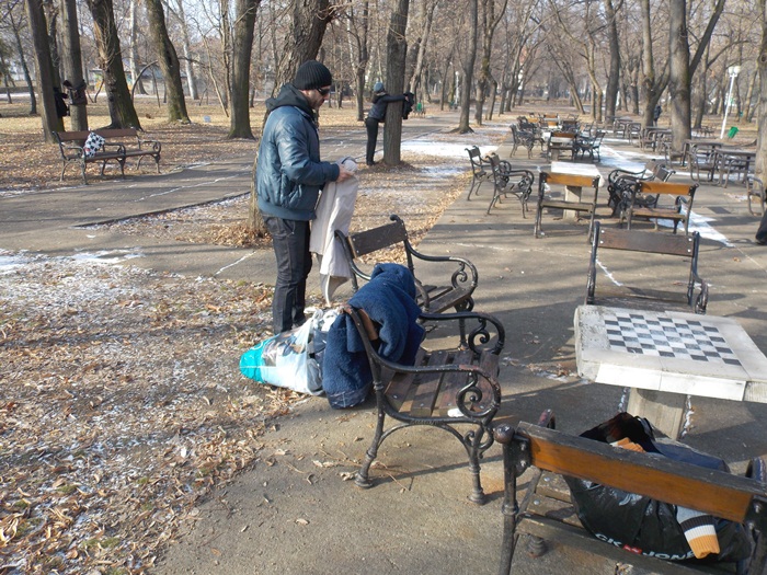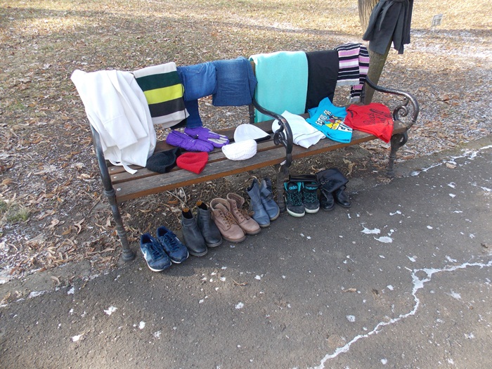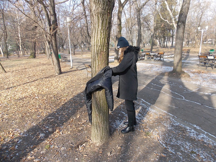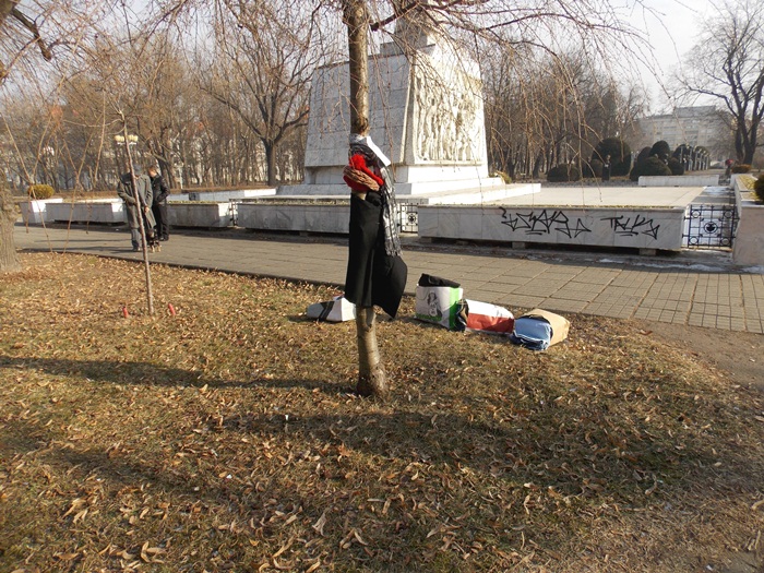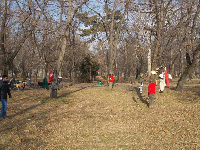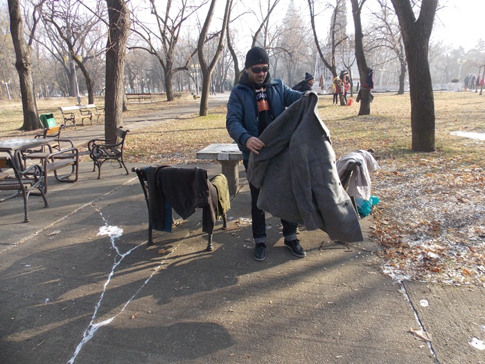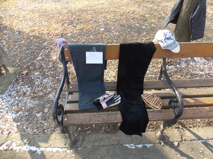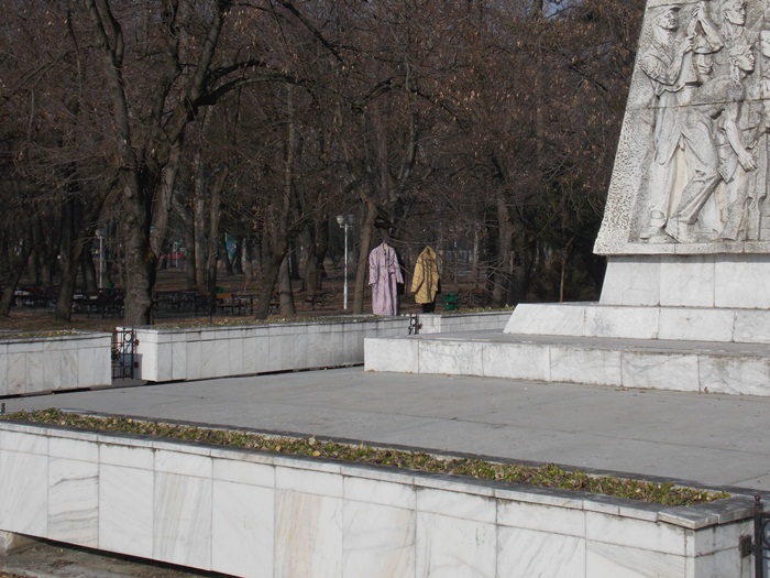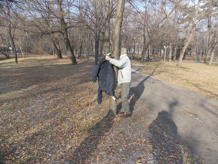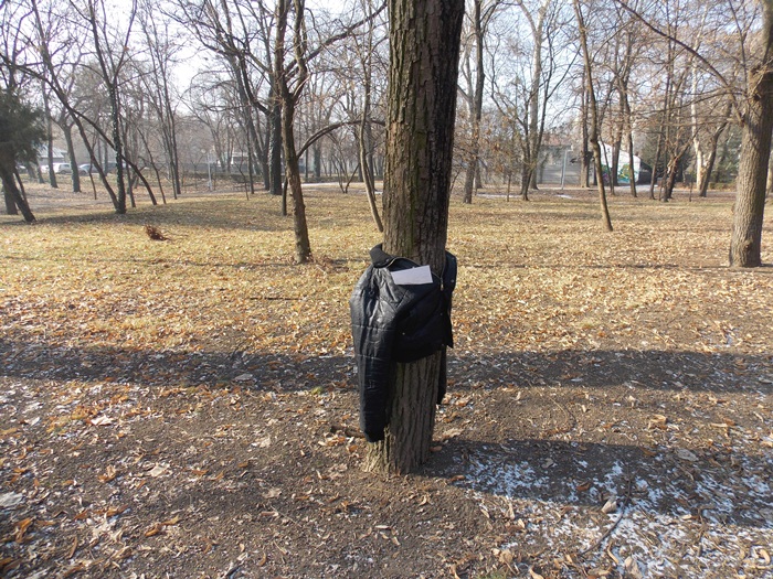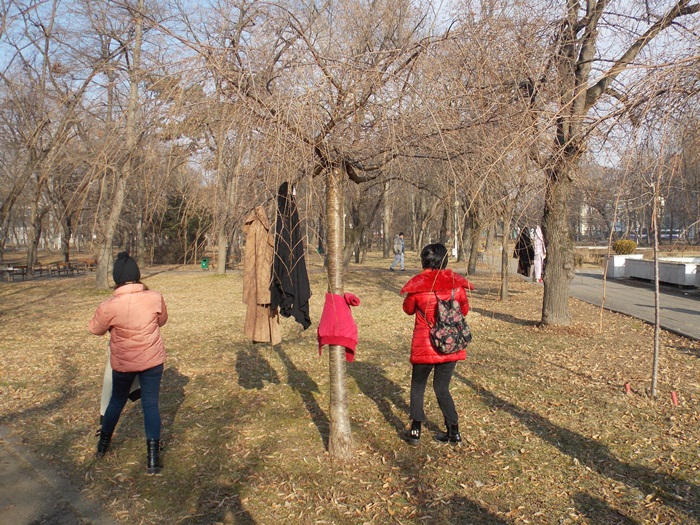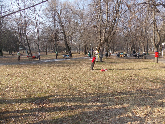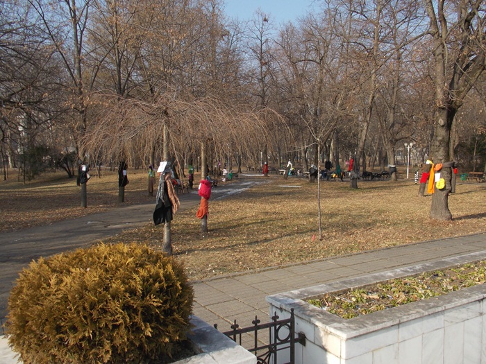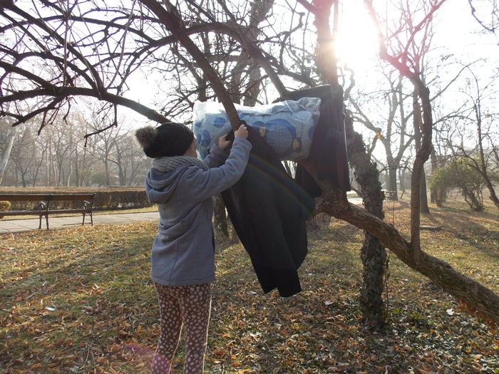 Cei care nu au pus hainele pe copaci, le-au pus pe bancile din parc si pe cele de la mesele de sah din Parcul Central.