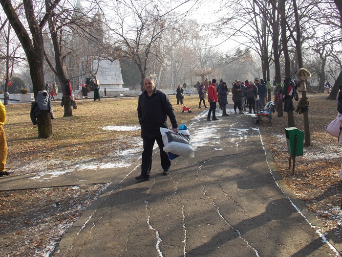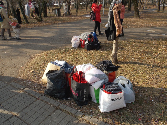 TIMISOARA. Vremea superba de la Timisoara i-a scos in Parcul Central pe multi timisoreni gata sa ii ajute pe cei nevoiasi. Cu genti, sacose sau saci, fiecare a adus ce haine nu mai foloseste pentru a le dona.