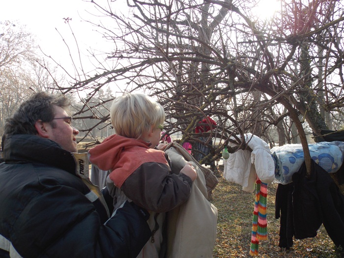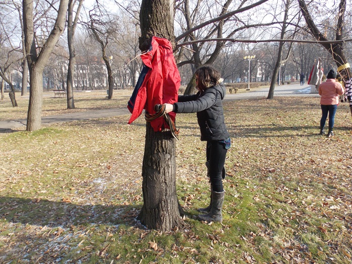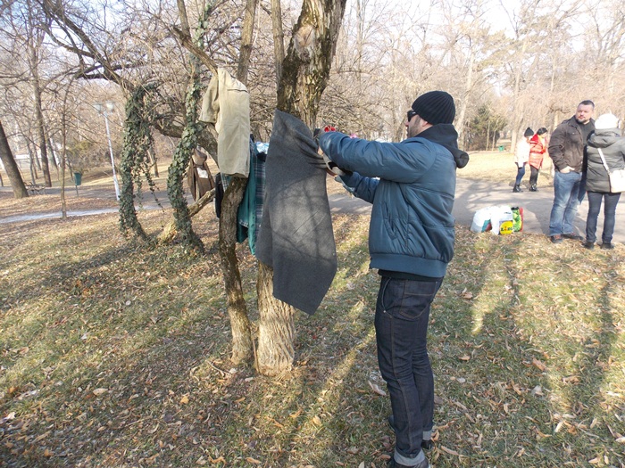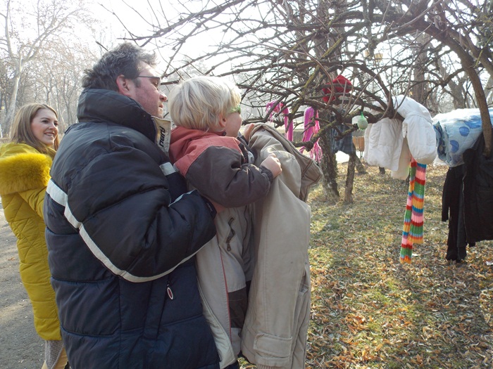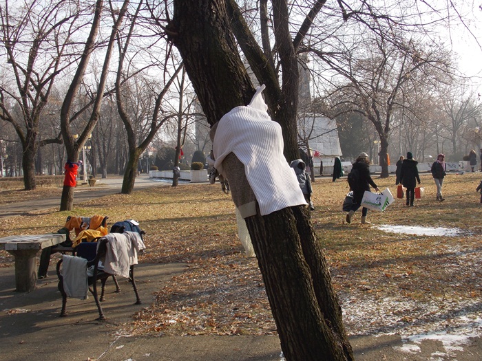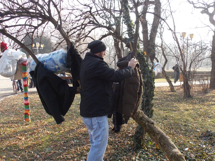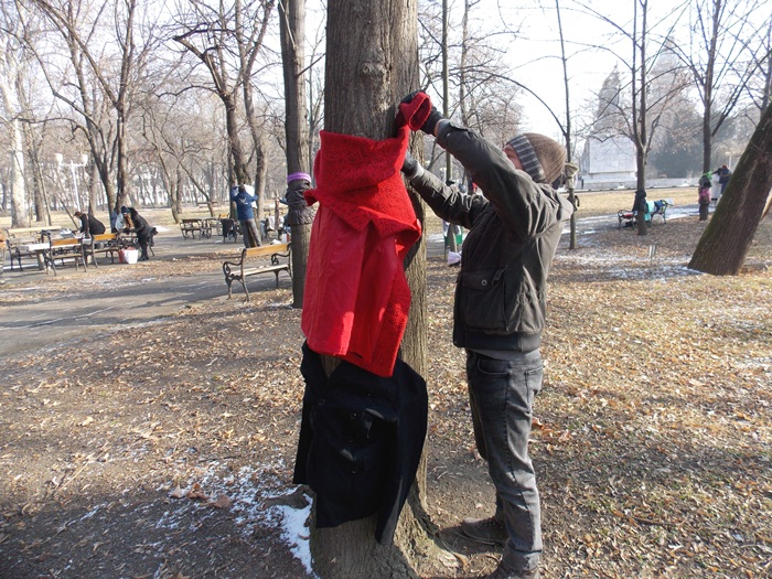 Strangerea de haine a fost pusa la cale de organizatia Look Inside, iar initiativa a pornit pe retelele de socializare sub numele ‘Te provoc sa fii Bun – Incalzim suflete!‘. Zeci de timisoreni au venit langa monumentul Ostasului Necunoscut din Parcul Central si rand pe rand, fie au adus sacose cu haine si le-au lasat in grija organizatorilor, fie au inceput sa imbrace sau sa impodobeasca cu ele copacii care strajuiesc doua dintre alei.
