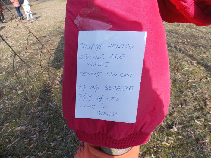 “Oamenii au nevoie de imbracaminte pentru sezonul asta rece. Stiti foarte bine ca sunt multe cazuri de oameni care ingheata pe strada si e un mic efort. Poate nici nu e un efort din partea noastra. Cu totii avem haine pe care nu le folosim in dulapuri si cu atat mai bine putem sa le dam altora care le sunt utile. Am anuntat actiunea in centrele de noapte si cred ca oamenii o sa vina sa le ia de aici. Noi ne-am luat angajamentul pentru hainele care nu sunt luate sa le luam inapoi din parc si sa le ducem in centrele de noapte sau in cele in care oamenii strazii vin“, a spus Denise Ardelean, fondator al fundatiei Look Inside, organizatorii evenimentului.