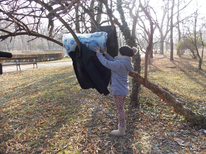 “Am adus o geaca si o patura pentru cei care au nevoie. A fost patura mea, dar am renuntat pentru ca am vrut sa fac o fapta buna“, a spus o pustoaica venita in parc cu tatal ei.