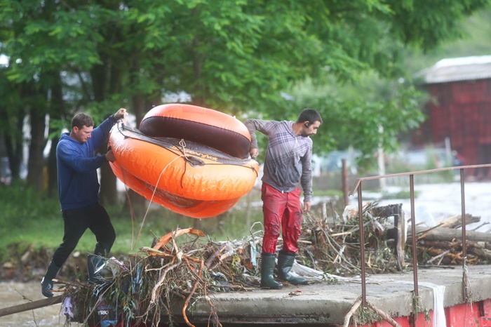 In total, pompierii au evacuat 37 de persoane (13 copii si 24 de adulti) si 231 de animale din gospodariile si zonele afectate de inundatii.