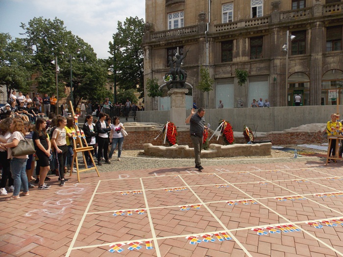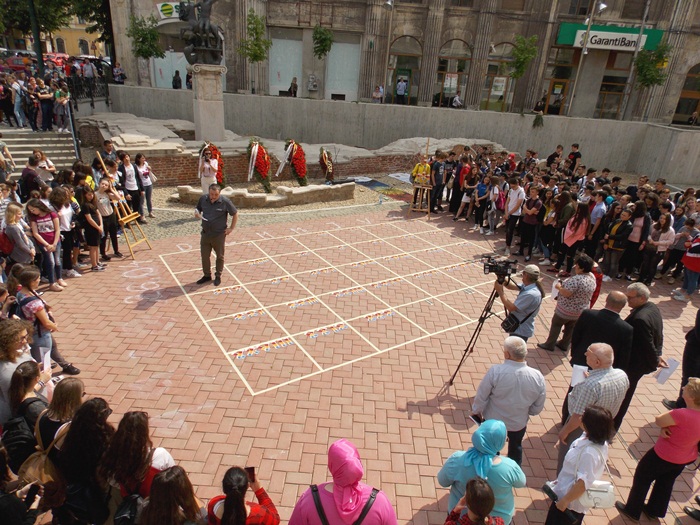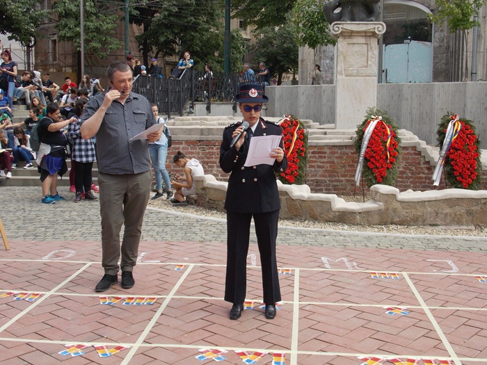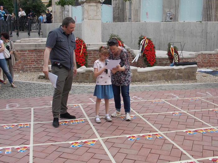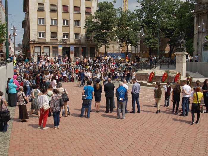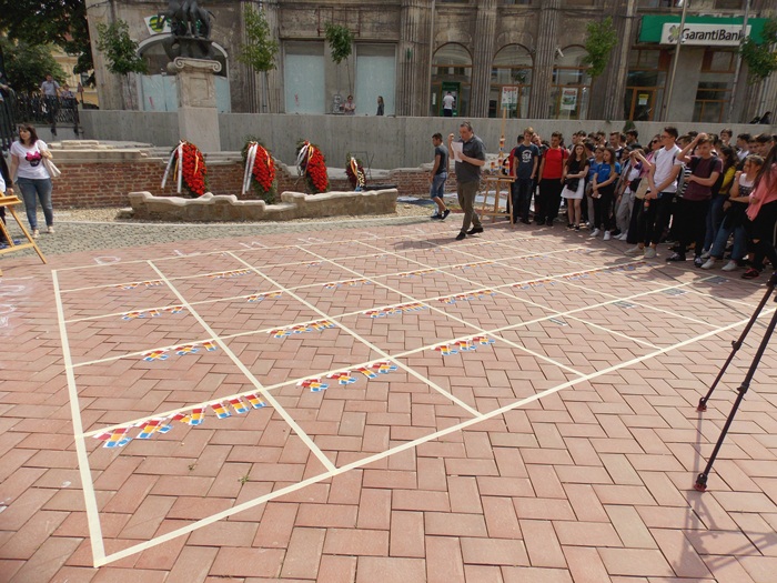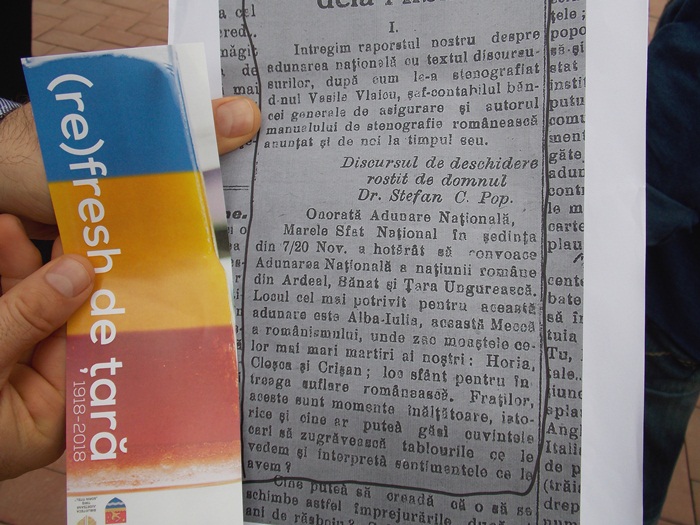 Elevi de la diferite scoli din Timisoara sau profesori ai lor, reprezentanti ai Consiliului Judetean Timis, ai Inspectoratului pentru Situatii de Urgenta, ai reprezentantelor diplomatice din oras sau ai unor institutii de cultura au venit in micuta piata din centrul orasului. Fiecare dintre ei a primit cate o foaie pe care era scris cate un articol aparut in ziarele din 1918 sau 1919.