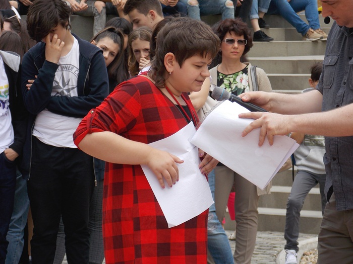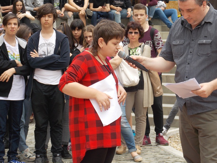 “Evenimentul este unul foarte reusit pentru ca sunt copii care nu mai sunt atat de atrasi de lectura. Am avut de citit ‘calindarul’ de buzunar din 1918, din Drapelul din 16 aprilie 1918. Am incercat sa si interpretez si mi s-a parut un text foarte frumos. Sunt mai timida si de-asta m-am si balbait putin“, a declarat Valentina, eleva in clasa a IX-a la Colegiul National Ana Aslan.