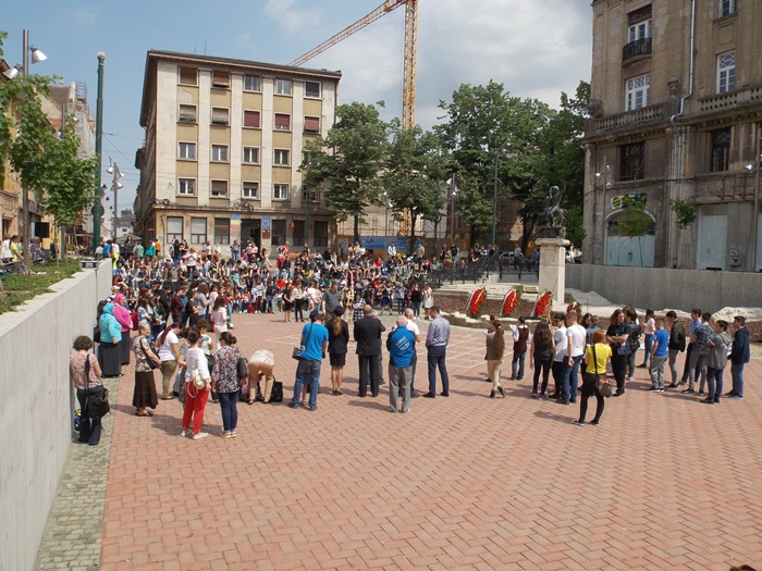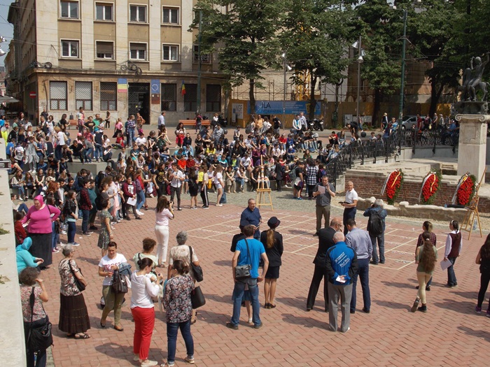 Evenimentul a umplut Piata Sfantu Gheorghe, iar cei care au trecut prin zona au ramas sa asculte cele citite la microfon si au facut poze.