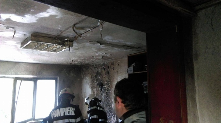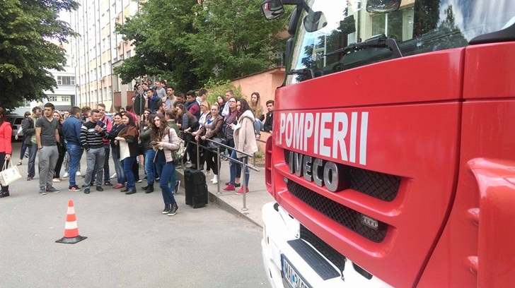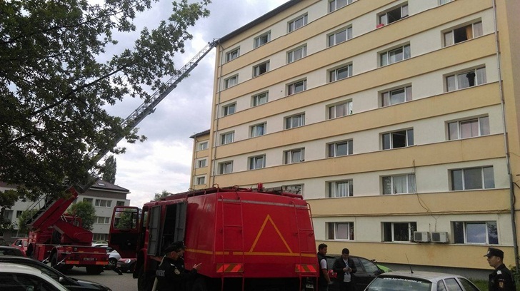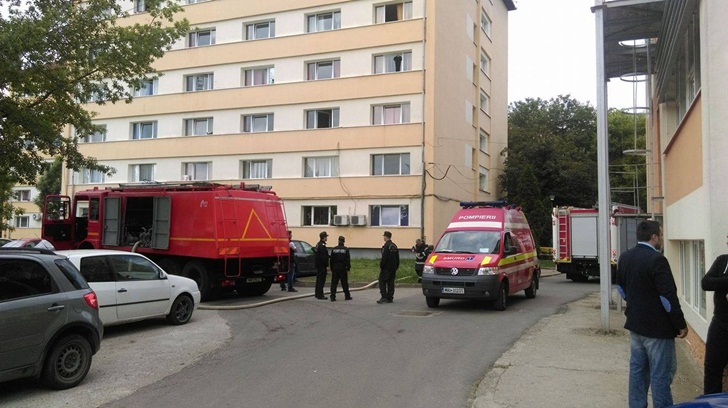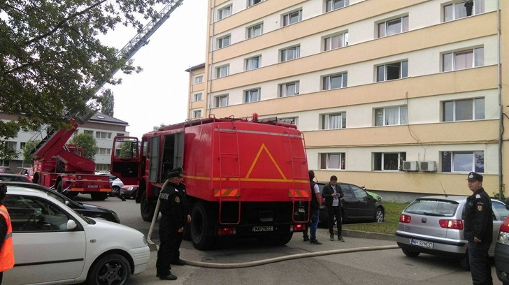 UPDATE: 49 de studenti au fost scosi in mare graba din caminul in care s-a produs incendiul. Din primele date, se pare ca focul a pornit de la un scurtcircuit provocat de un resou defect bagat in priza.