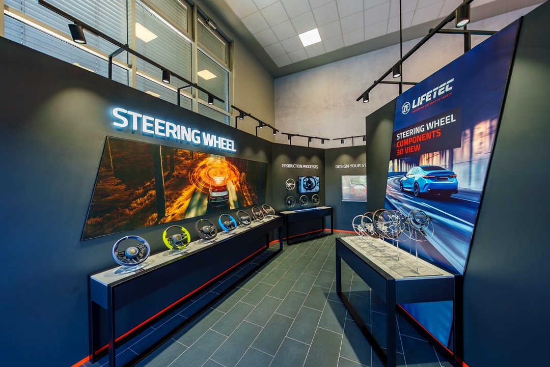 Showroomul prezintă procesele de producție ale volanelor și airbagurilor, soluții personalizate pentru clienți premium, precum și o gamă largă de componente expuse prin module interactive și materiale video. Cu peste 7500 de combinații de produs fabricate local, showroomul reflectă complexitatea operațională și standardele premium ale fabricii din Timișoara.