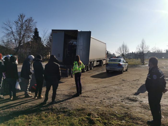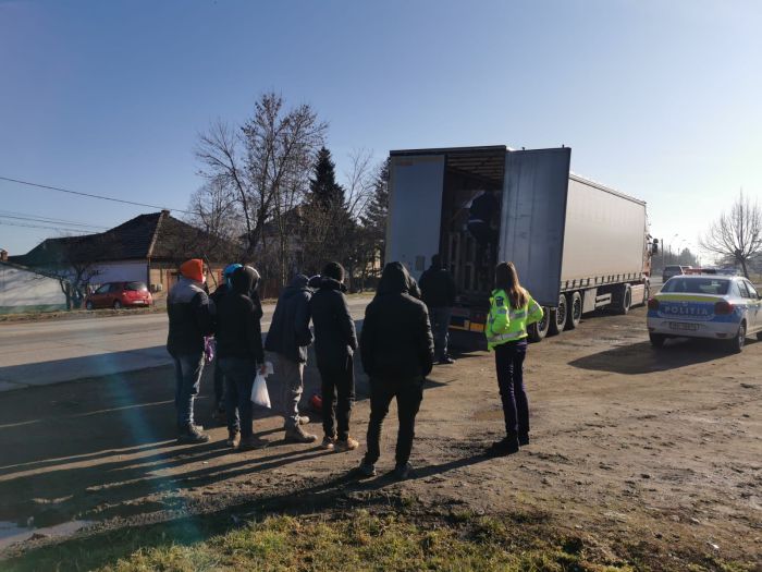 UPDATE: Toti cei 7 migranti aveau documente asupra lor. Plecasera dintr-un centru din Maramures, asa ca au fost indreptati inapoi spre Baia Mare. S-a dovedit ca acestia se urcasera in camion fara ca soferul sa isi dea seama, pe cand s-a aflat intr-o parcare.