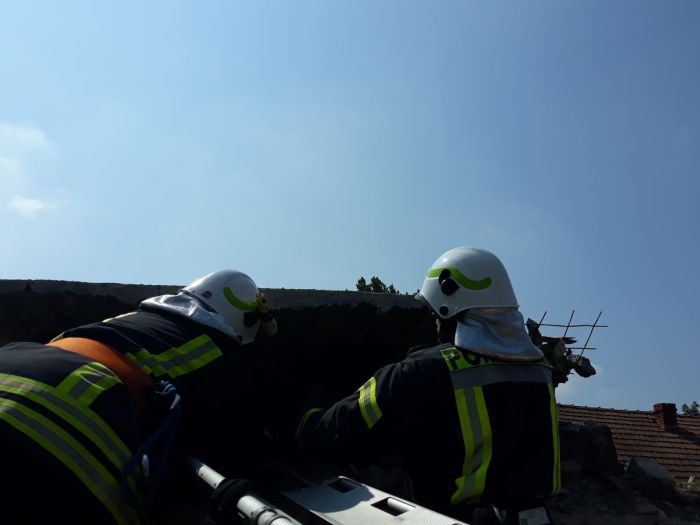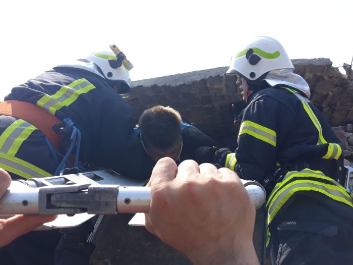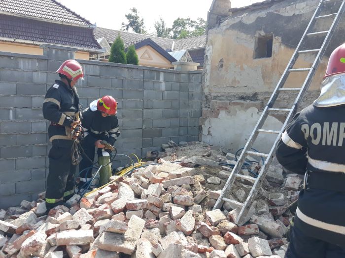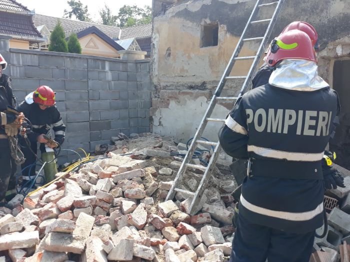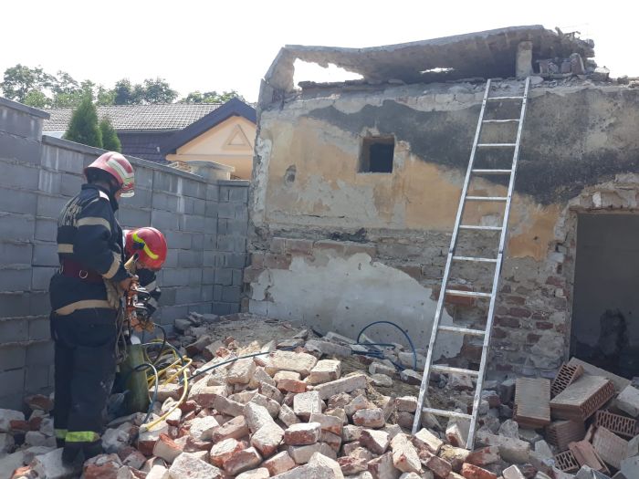 Unul dintre raniti a reusit sa iasa singur de sub mormanul de moloz, in vreme ce al doilea a ramas captiv sub bucatile de perete cazute peste el.
