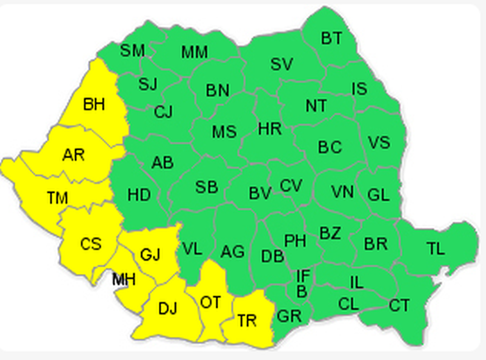 Meteorologii au emis o avertizare de tip COD GALBEN pentru zona de vest a tarii pentru ziua de sambata. In Banat, temperaturile vor ajunge la maxime de 36-38 de grade Celsius, iar indicele de confort termic va fi depasit.