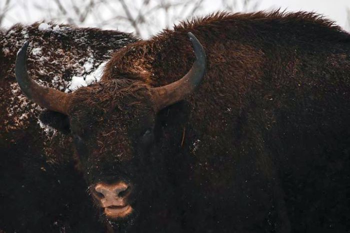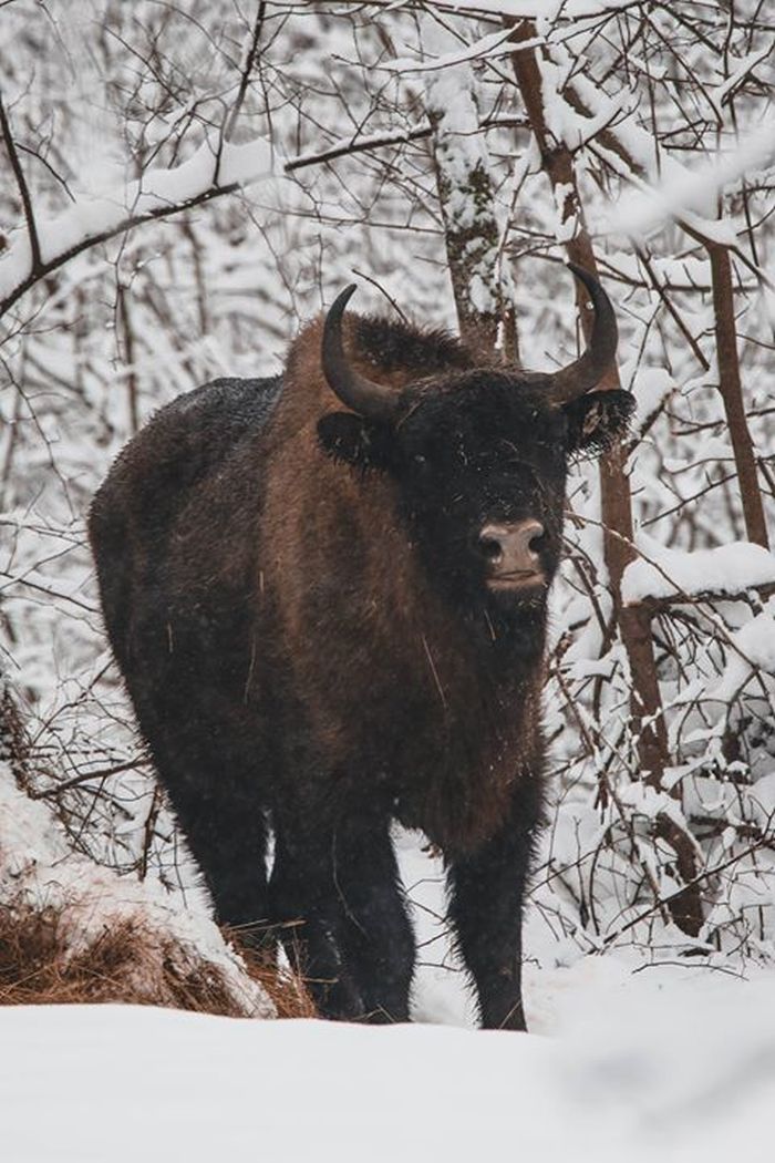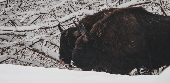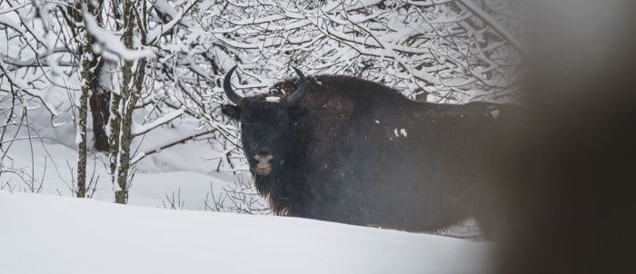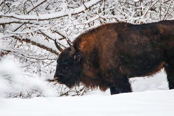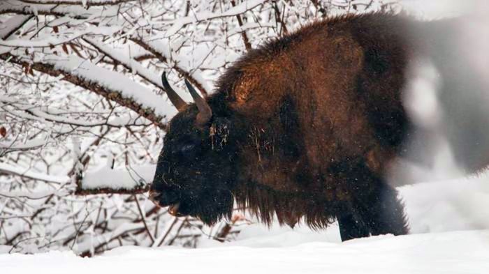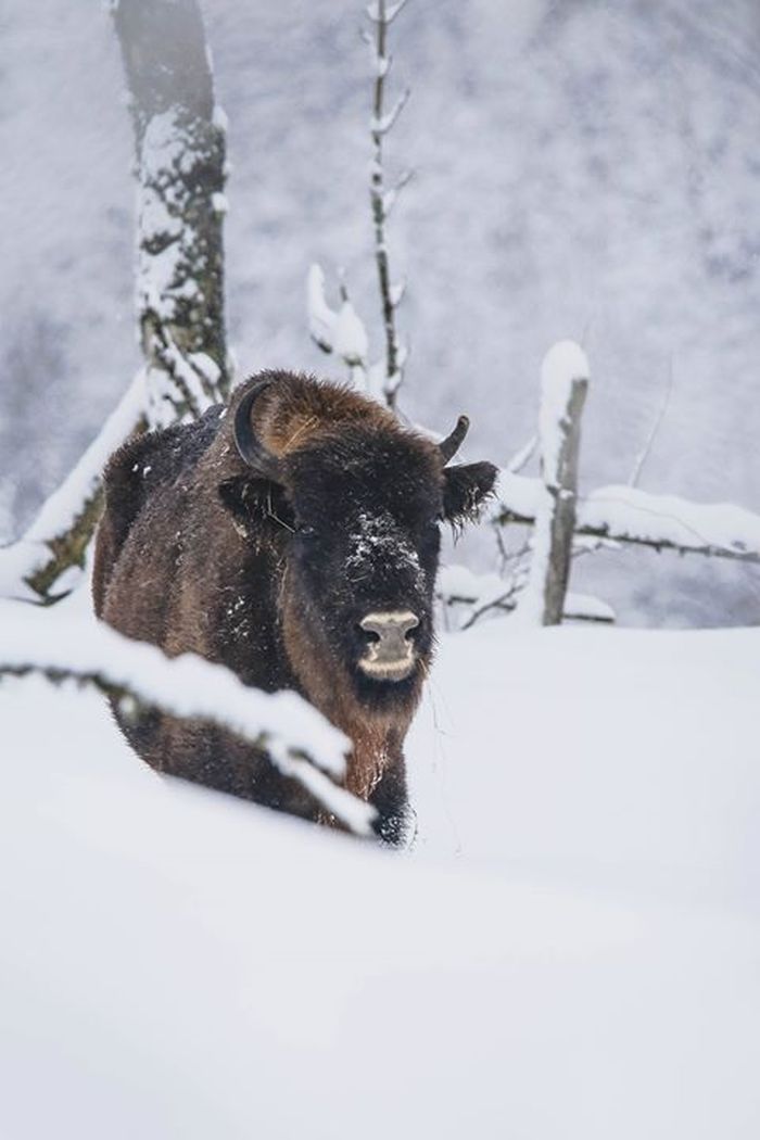E un sezon excelent pentru zimbrii din Muntii Banatului. Animalele impunatoare se bucura din plin de iarna.