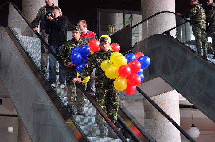 Zeci de militari din detasamentele Brigazii 18 Infanterie Banat celebreaza Ziua Armatei in acest weekend la mall. Din ora in ora are loc cate o parada a tinutelor militare prin mall, din cand in cand exercitii de manuire a armamentului, iar pe tot parcursul celor doua zile, timisorenii pot asculta cantece patriotice, pot vizita expozitiile de tehnica, de machete blindate si pot urmari exercitiile demonstrative de alpinism militar. Nici prichindeii nu au fost uitati. Micutii sunt asteptati in zona locului de joaca din mall pentru a fi pictati pe fata si pentru a-si face poze cu echipamentul Armatei Romane.