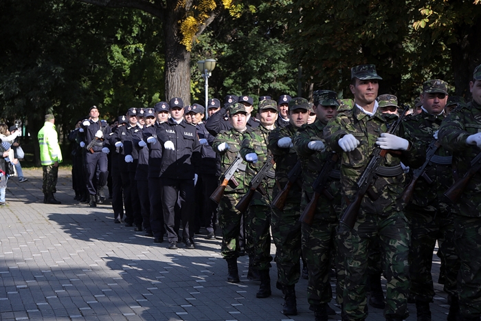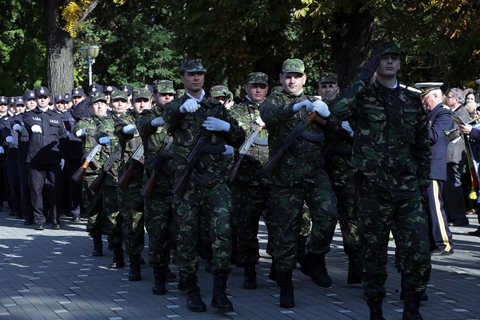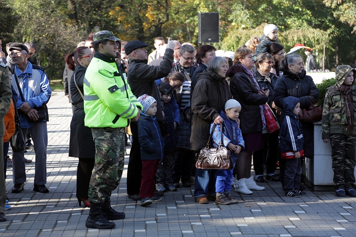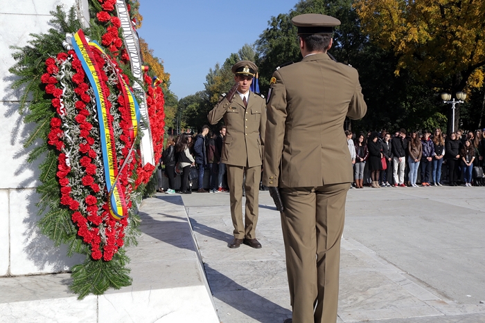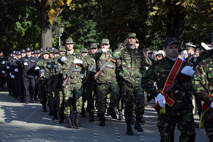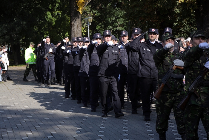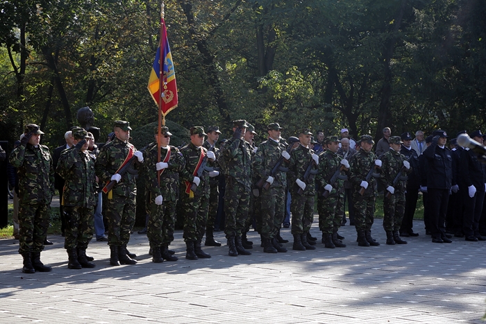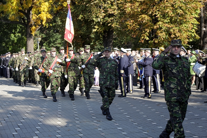 TIMISOARA. Depuneri de coroane, momentele artistice ale fanfarei si defilarea militarilor. In acest fel a fost marcata, la Timisoara, Ziua Armatei. Zeci de copii, tineri, dar si veterani de razboi sau simpli timisoreni s-au adunat in Parcul Central.