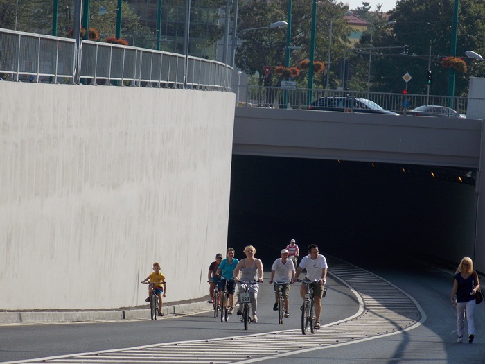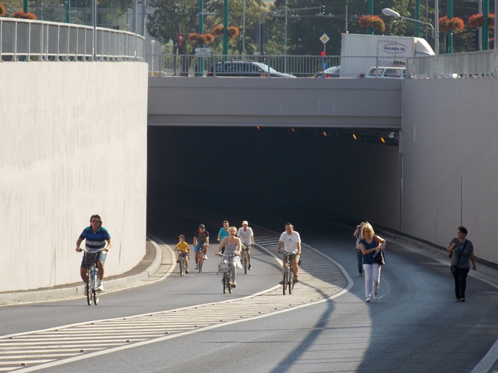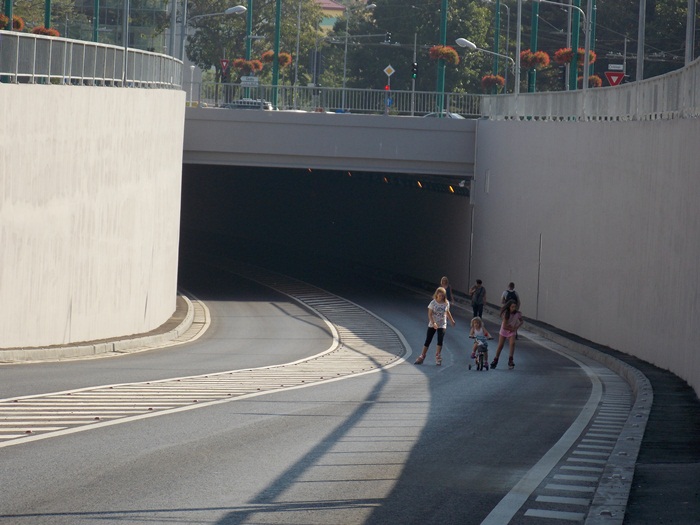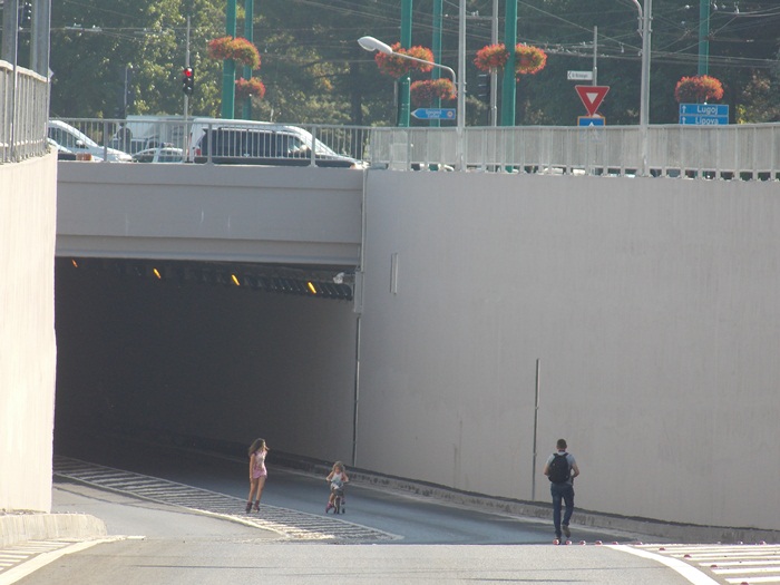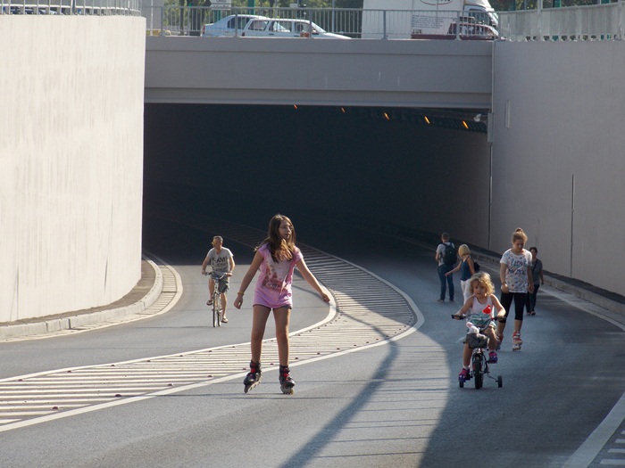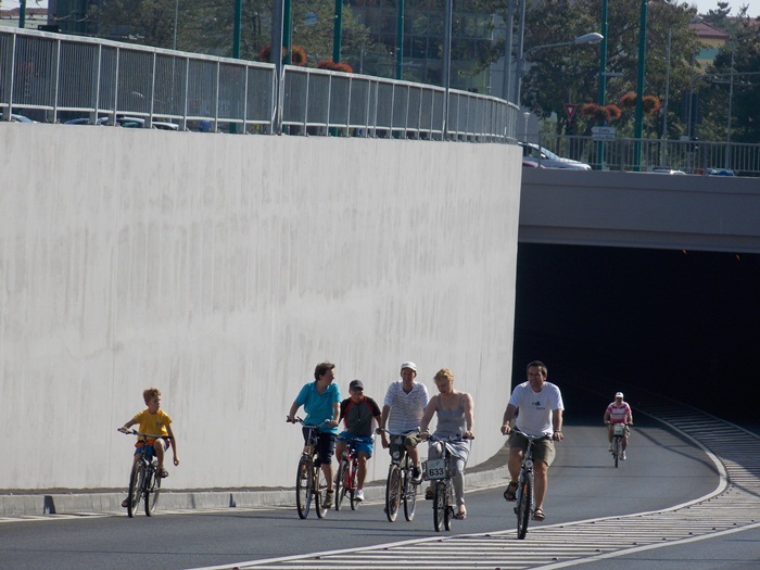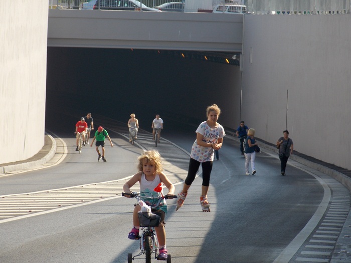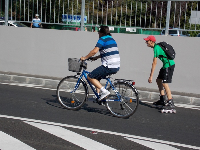 TIMISOARA. Pasajul Michelangelo a fost inchis circulatiei rutiere vreme de doua ceasuri sambata dimineata, astfel ca biciclistii si rollerii s-au putut da in voie pe aici, intre orele 10.00 si 12.00.