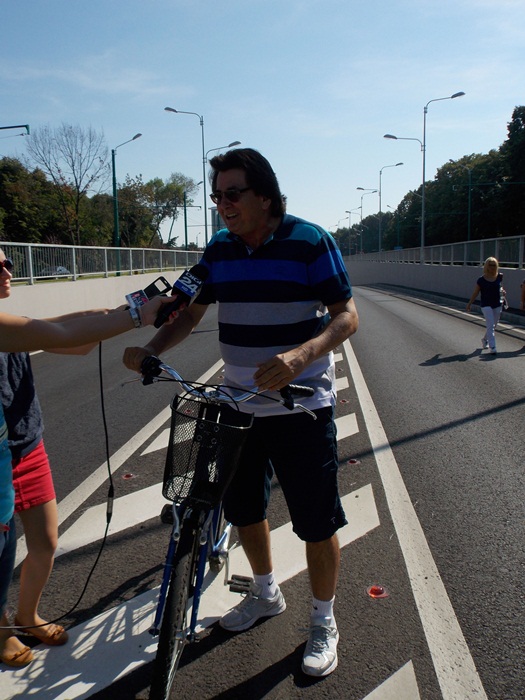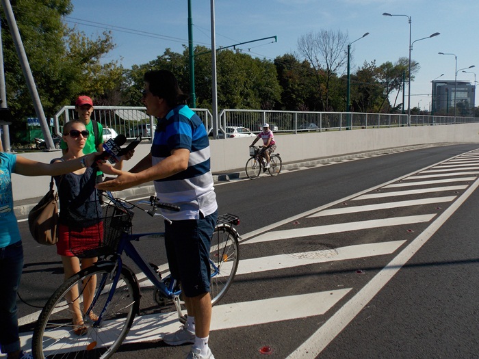 Printre biciclistii prezenti, nu foarte multi la numar, s-a aflat si primarul Nicolae Robu, initiatorul acestui eveniment. El a imprumutat o bicicleta de la primarie si s-a dat prin pasaj, apoi a schimbat cateva vorba cu participantii.