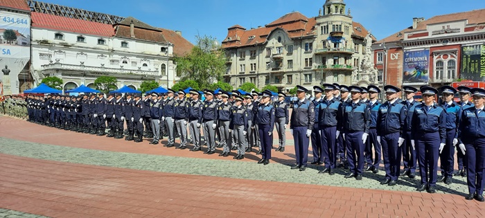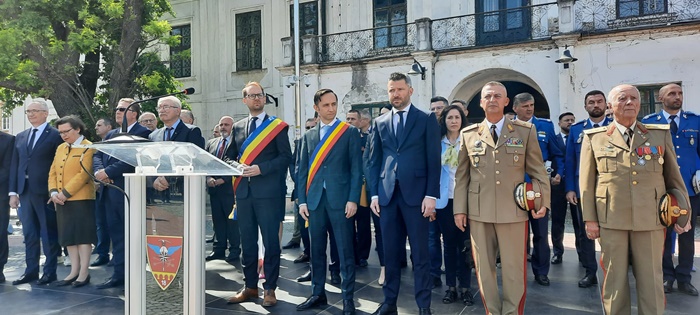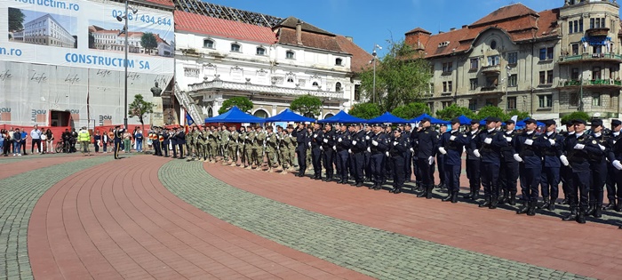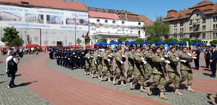 Evenimentele au inceput cu discursuri pe scena instalata in Piata Libertatii, dupa care a avut loc ceremonia organizata de armata.