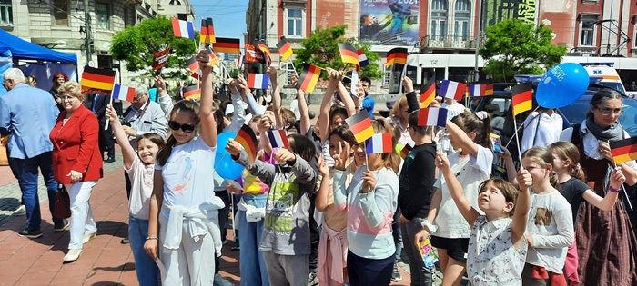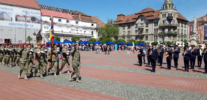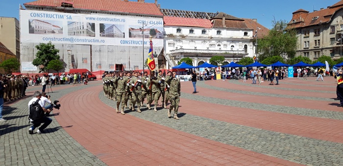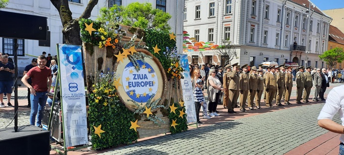 TIMISOARA. Ziua Europei a fost sarbatorita la Timisoara ca inaintea pandemiei, cu defilare militara, spectacole de muzica, standuri ale consulatelor din oras sau ale institutiilor publice, dar si cu multi vizitatori.