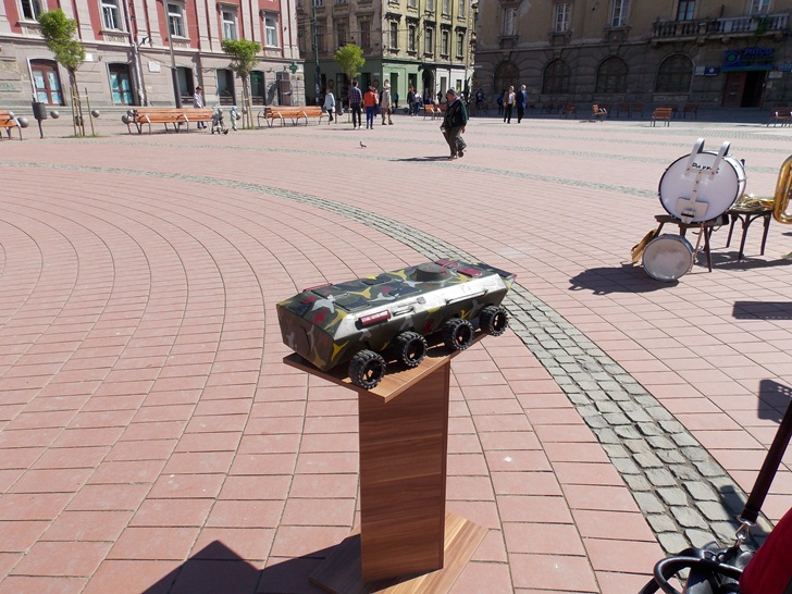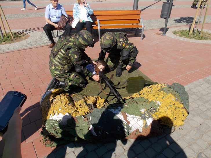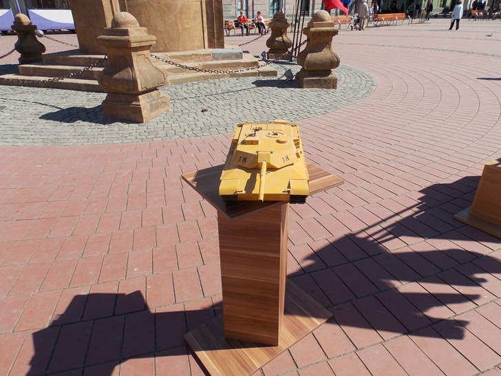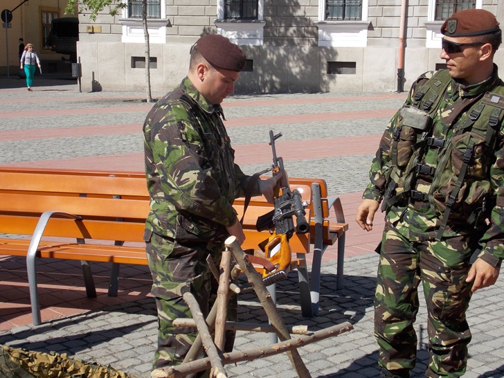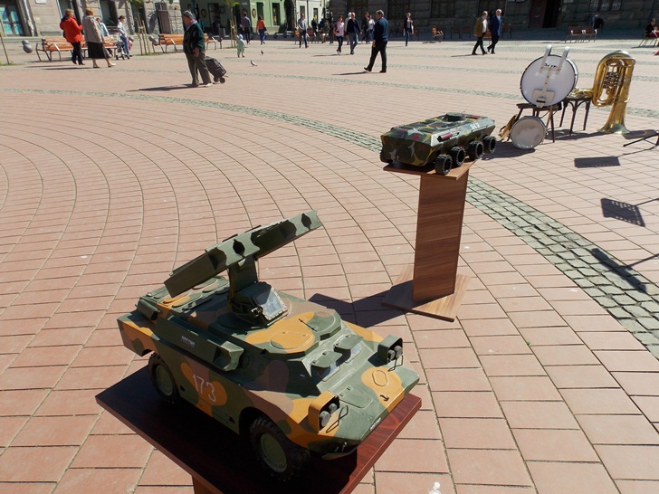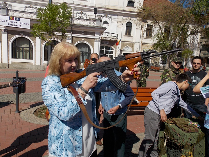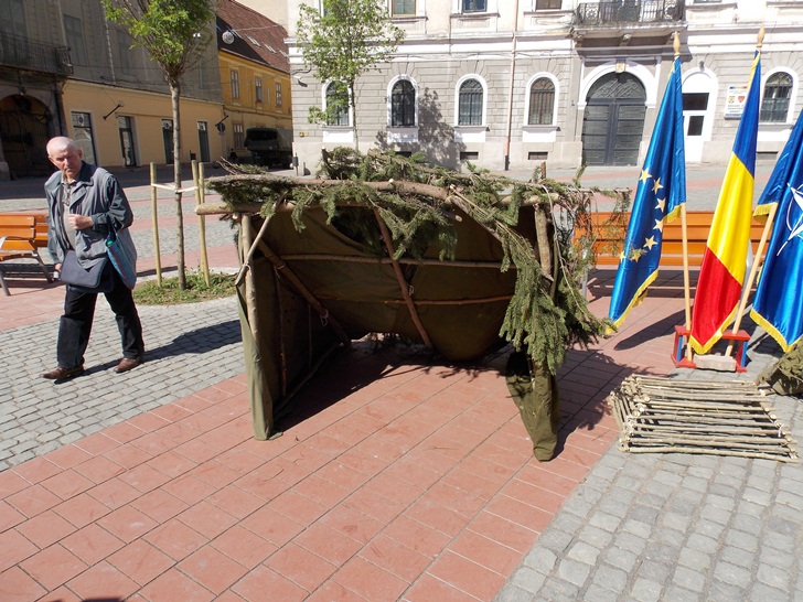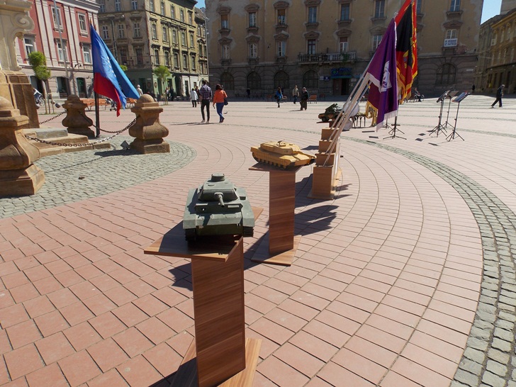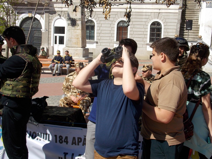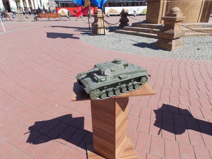 Militarii timisoreni au organizat cu o zi mai devreme o festivitate in Piata Libertatii, chiar in fata sediului Garnizoanei Timisoara. Cei care au trecut prin zona au putut admira mai multe machete de tancuri, blindate, dar si arme si machete ale unor adaposturi.