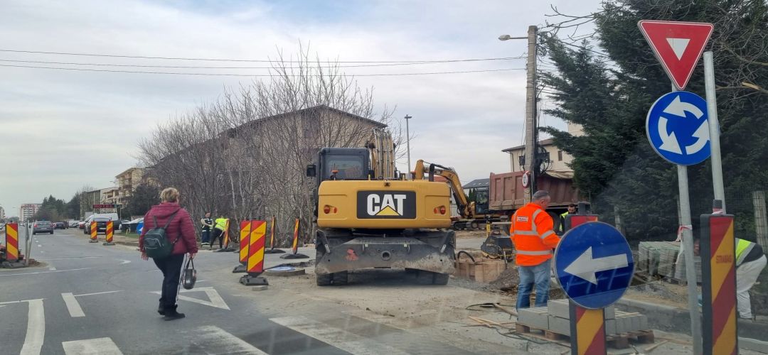 Lucrarile de amenajare a celor doua sensuri giratorii definitive sunt realizate de SC Strabag, costul acestora fiind de 331.570 lei.