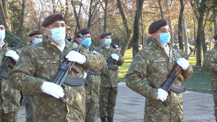Prefectul Liliana Onet a citit mesajul primului ministru Ludovic Orban, dupa care au fost depuse coroane de flori la Monumentul Ostasului Roman, pe ritmurile imnului eroilor.